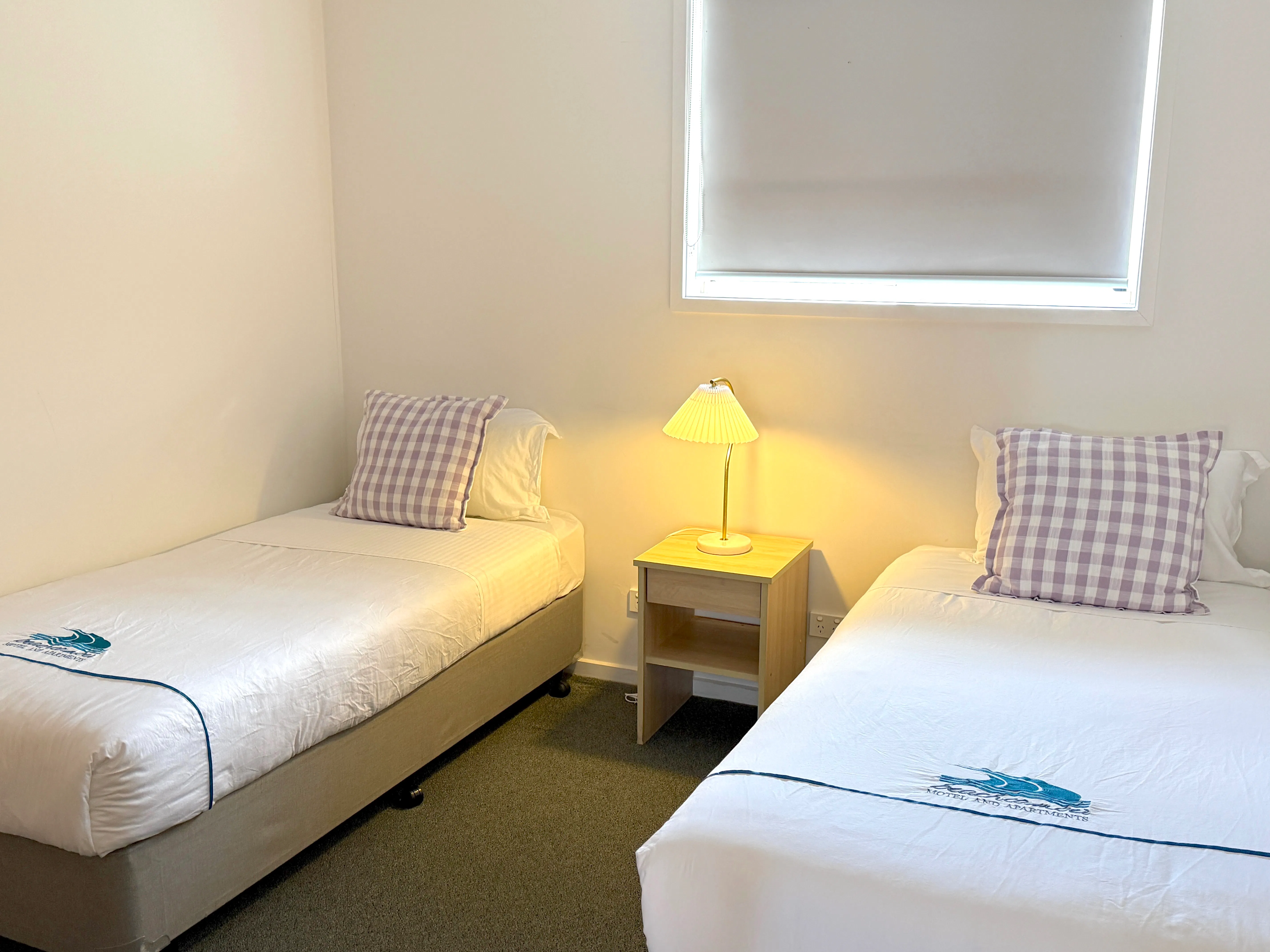 Spacious family apartment with queen size bed in the main area along with large screen TV. lounge, meals area, full kitchen, air conditioning with the separate bedroom having two single beds. Bathroom has shower, seperate bath, hand basin, toilet & hair dryer. Great, clean & spacious apartment, ideal for overnight or longer stays for families or couples willing to share. Ground Floor, price including 4 persons, Max 6 persons including children (need extra bed for $45/night)